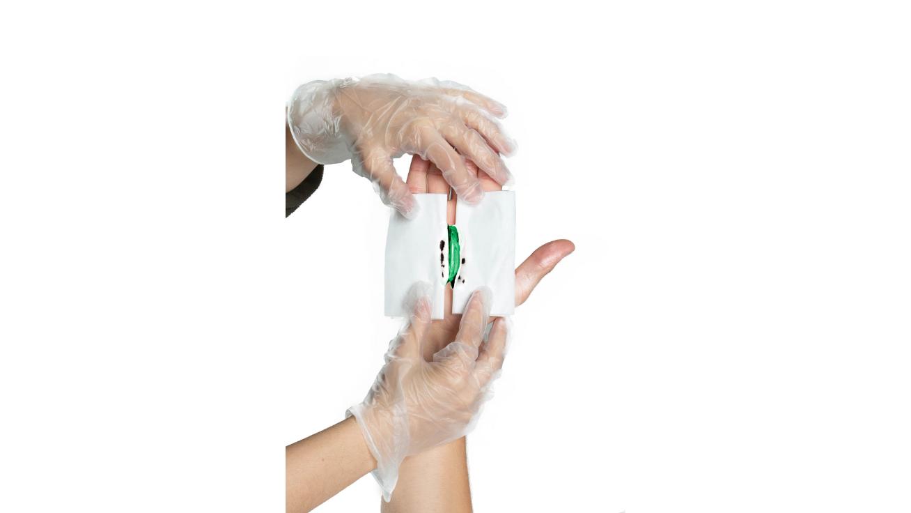 Schutz vor Verunreinigungen: Wunde mit sterilen Kompressen beidseitig abdecken.