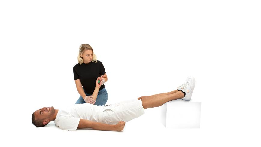 Schocklage: Lege die Person flach auf den Rücken und lagere die Beine erhöht.