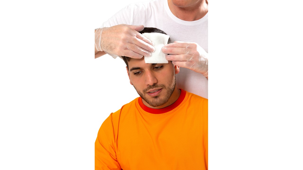 Schritt 2: Fixiere die Wundauflage mit einem Verband oder gefalteten Dreiecktuch.